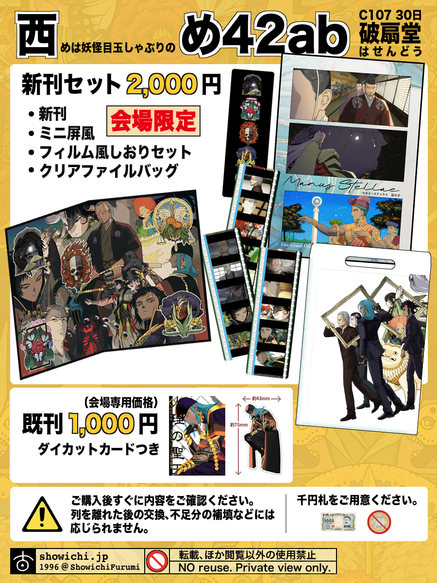 グッズはすべて会場限定品となっております。告知を失念しており、申し訳ありません。