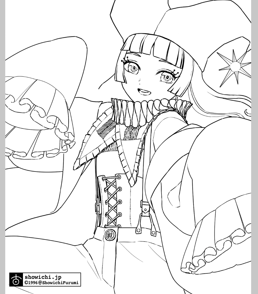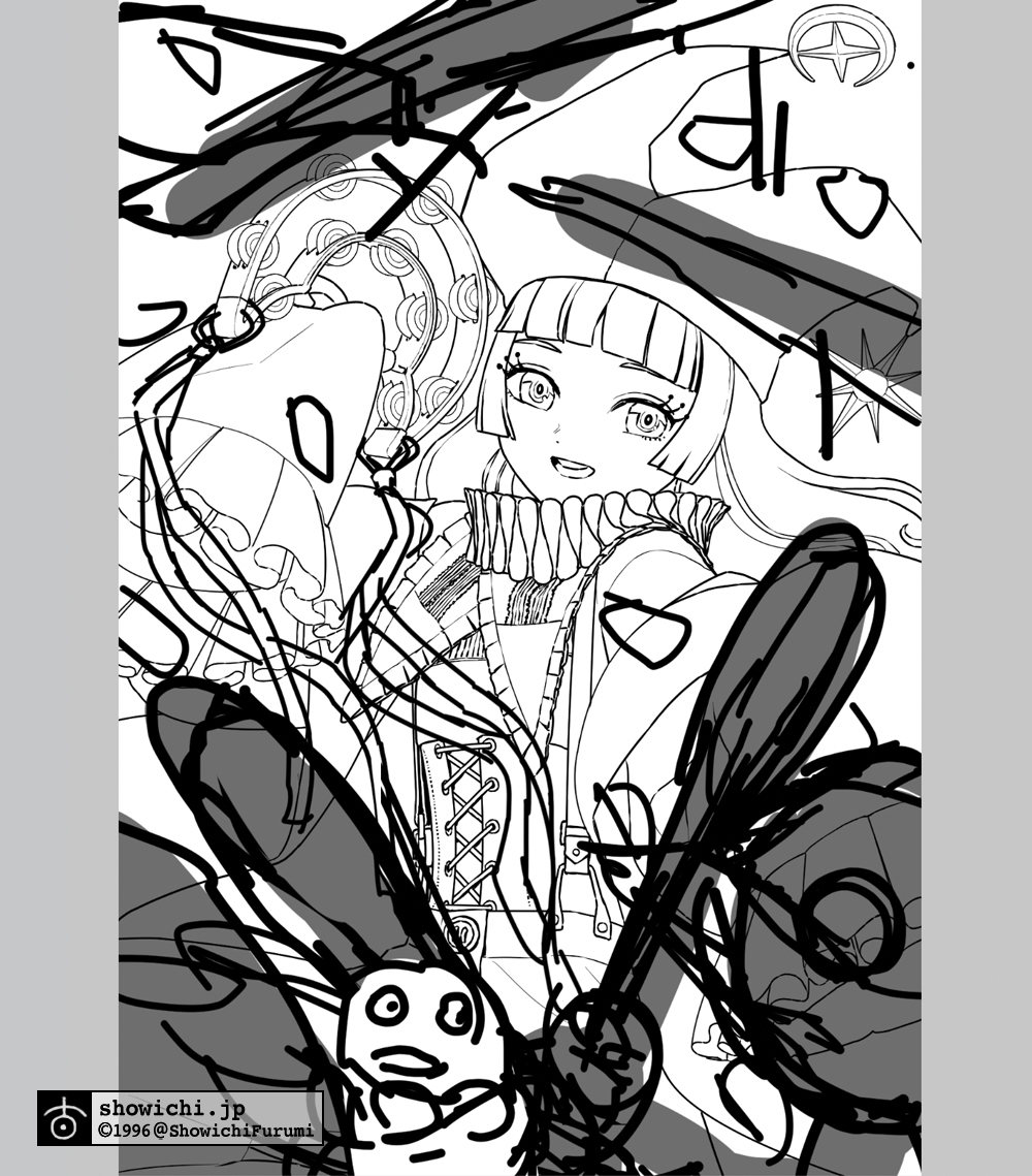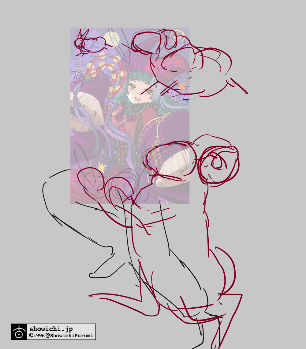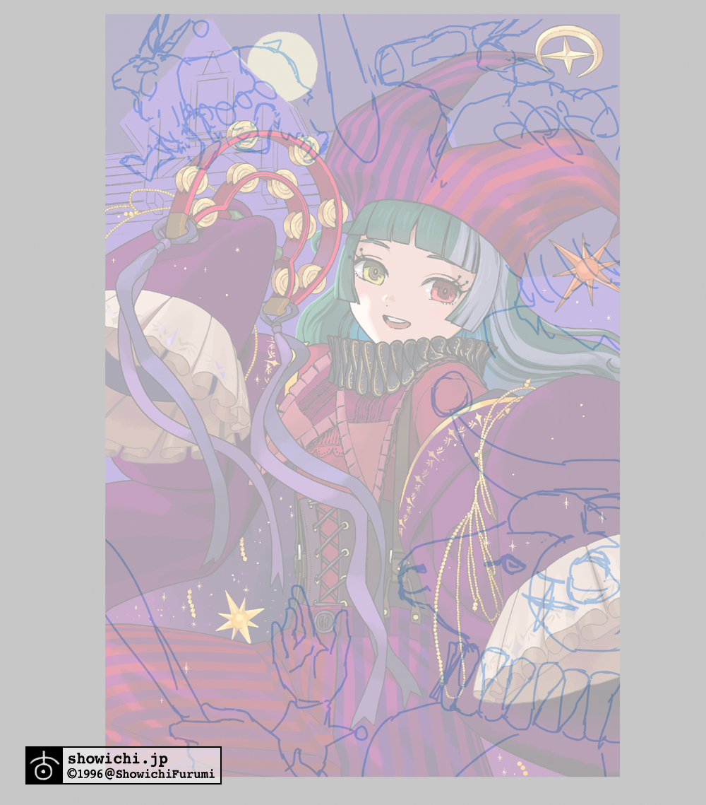背景は何が良いかなとずっと考えていたのですが、大変ありがたいことに拙作バベルハイムを気に入っていただいているとのことでしたので、左様でしたらぜひとも万冥節のようなわちゃわちゃした舞台でパレードに参加されているイメージで描かせていただくのが良いのではないかと思った瞬間、描ける自信が湧いてまいりました。バベルハイムへようこそ。