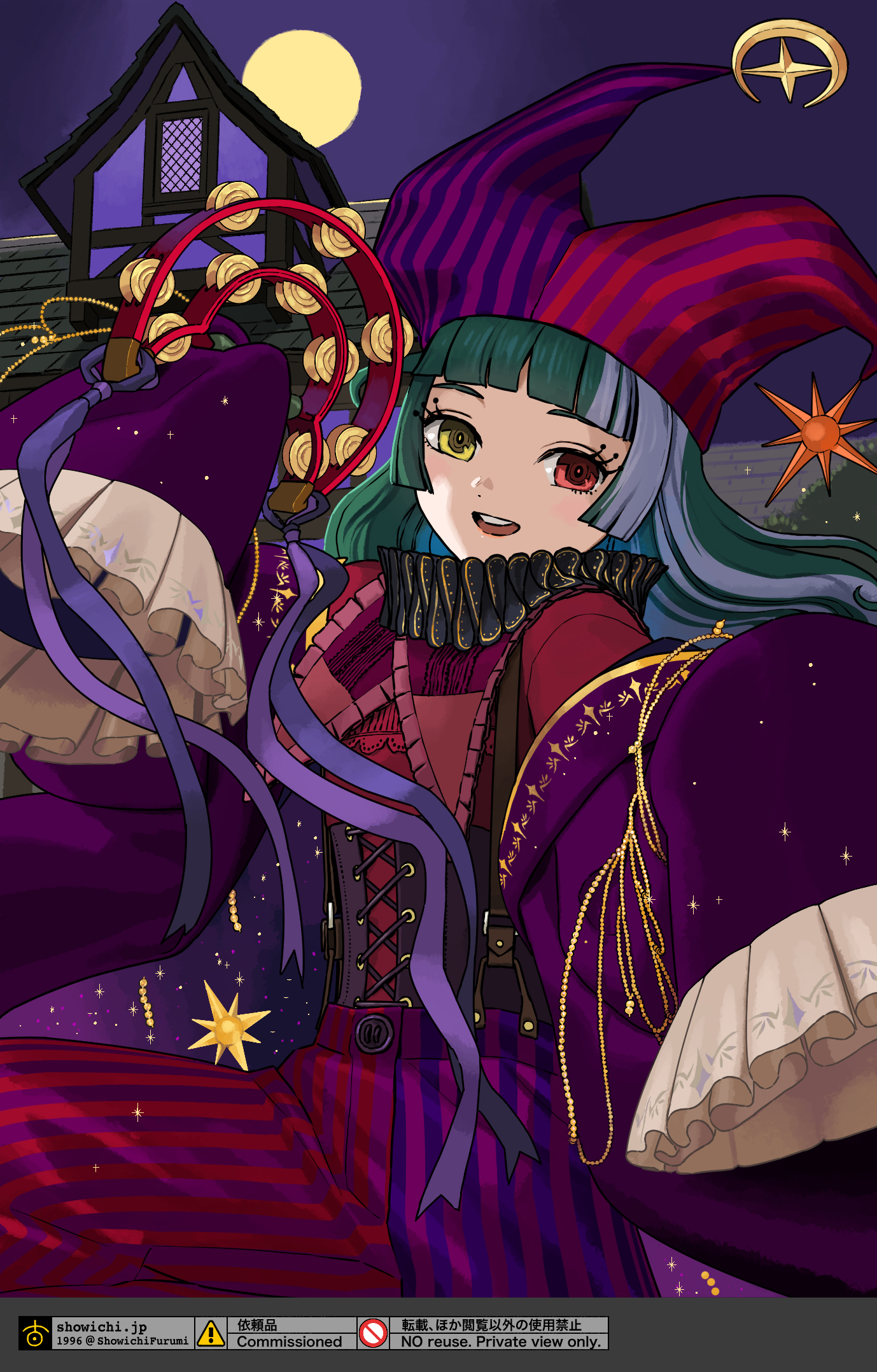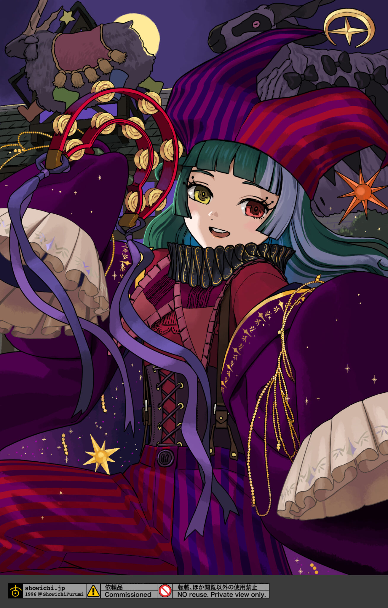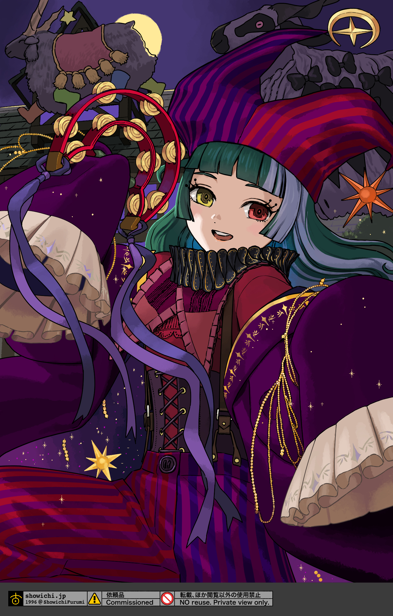 背景は何が良いかなとずっと考えていたのですが、大変ありがたいことに拙作バベルハイムを気に入っていただいているとのことでしたので、左様でしたらぜひとも万冥節のようなわちゃわちゃした舞台でパレードに参加されているイメージで描かせていただくのが良いのではないかと思った瞬間、描ける自信が湧いてまいりました。バベルハイムへようこそ。