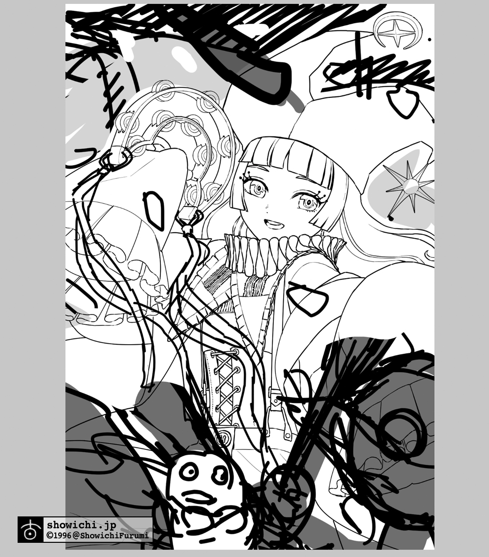 女の子の魅力と賑やかな雰囲気の両方が引き立つよう、構図を探っている段階です。