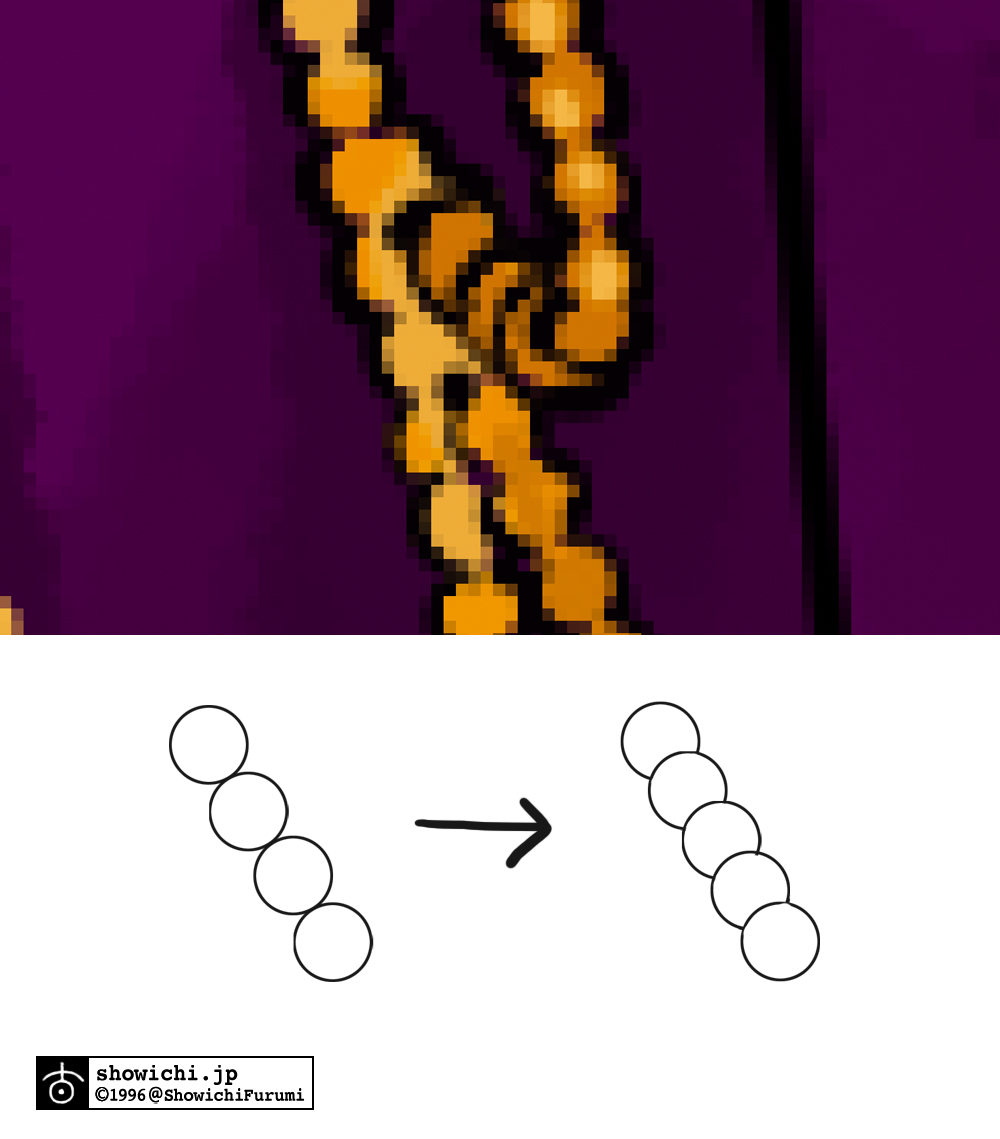 画風によってはこのままでも全く問題ないのですが、私の絵柄の場合はもう少し「手描きによって生まれるほんのりとした不正確さ」が必要でしたので、あえてビーズの一部を1、2ピクセル左右にずらしました。